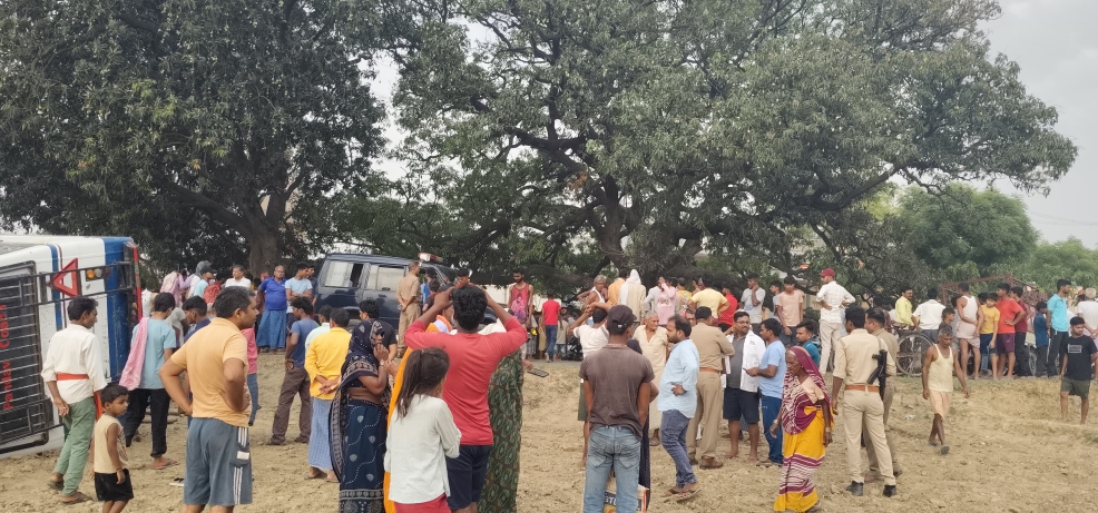 बस मोड़ पर भी तेज गति से चल रही थी बस के सामने अचानक पिकप मालवाहक आ गई जिसके कारण बस अनियंत्रित होकर खेत में पलट गई।बस पलटने से ननिहाल में आये नौनिहाल अनुज गौतम उम्र 7 वर्ष की मौके पर मौत हो गई जबकि उसके पिता जितेंद्र गौतम को गंभीर चोटें आई जिनका इलाज ट्रामा सेंटर प्रयागराज में चल रहा है।घायल अनुज की मां सहित आधा दर्जन लोगों का इलाज स्वास्थ्य केंद्र भानीपुर दुर्गागंज में किया गया जिसमें अधिकांश लोगों को प्राथमिक उपचार के बाद छोड़ दिया गया। 7 वर्षीय अनुज के निधन से उसके ननिहाल कुढ़वां और घर फूलपुर में परिजनों का रो-रो कर बुरा हाल है अनुज की मां रो-रोकर बेसुध हो गई, अनुज के पिता की स्थिति चिंताजनक है। ग्रामीणों के अनुसार बस की गति मोड़ पर तेज थी और सामने से पिकप मालवाहक आने से यह हादसा हुआ मौके पर पहुंची पुलिस ने घायलों को एंबुलेंस से अस्पताल पहुंचाया और गंभीर रूप से घायल जितेंद्र गौतम को इलाज हेतु प्रयागराज भेजा।