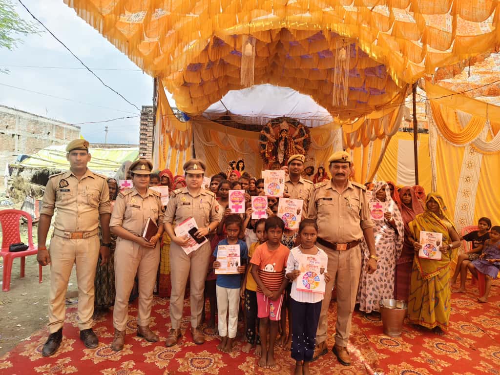 जंघई।  मिशन शक्ति फेज 5.0 अभियान के तहत थाना सराय ममरेज कमिश्नरेट प्रयागराज में मिशन शक्ति टीम व एंटी रोमियो टीम  द्वारा ग्राम छतौना के दुर्गा पंडाल में बालिकाओं व महिला सुरक्षा  महिला सशक्तिकरण तथा केंद्र सरकार व राज्य सरकार द्वारा संचालित विभिन्न योजनाएं जैसे सुकन्या समृद्धि योजना, वृद्धा पेंशन योजना, विधवा पेंशन योजना, उज्ज्वला योजना, सामूहिक विवाह योजना, चिकित्सा संबंधी आयुष्मान योजना आदि व 8 बिंदुओं पर केंद्रित सूचना व गहनता से वार्ता कर  विभिन्न हेल्पलाइन नंबर जैसे वूमेन पावर हेल्पलाइन नंबर 1090, महिला हेल्पलाइन नंबर 181, चाइल्ड हेल्पलाइन नंबर 1098, मुख्यमंत्री हेल्पलाइन नंबर 1076, पुलिस हेल्पलाइन नंबर 112 आदि के बारे में जानकारी दी गई जिसमें साइबर फ्रॉड के बारे में विस्तृत जानकारी देते हुए साइबर हेल्पलाइन नंबर 1930 के बारे में अवगत कराया गया।