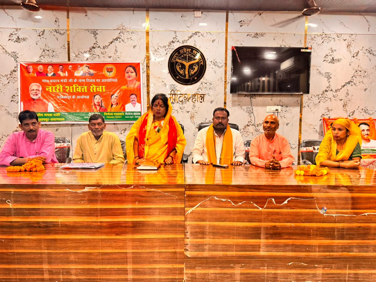 जंघई। प्रधानमंत्री नरेंद्र मोदी के जन्म दिवस के सेवा पखवाडा कार्यक्रम में नारी शक्ति का प्रतापपुर ब्लाक सभागार में अभिनंदन किया गया। मुख्य अतिथि भारतीय जनता पार्टी की जिलाध्यक्ष निर्मला पासवान ने संबोधित करते हुए कहा कि भाजपा सरकार में नारी का सम्मान सर्वोपरि है, आज देश की बेटियाँ फाइटर प्लेन उड़ा रही हैं, उज्जवला गैस, राशन आदि की सुविधा नारी को ही मिल रहा है, देश में बेटियाँ सुरक्षित हैं, उन्होंने देश के विकास में आधी आबादी की भागीदारी का आवाहन किया एवं माताओं को अपने बच्चों की शिक्षा पर विशेष जोर देने के लिए प्रेरित किया। कार्यक्रम को जिला उपाध्यक्ष श्याम बिहारी पांडेय, ब्लॉक प्रमुख शैलेश यादव, मंडल अध्यक्ष वरुणा मनोज पाठक, संयोजक रीना सिंह ने संबोधित कियाl कार्यक्रम का संचालन मनोज सिंह आचार्य ने किया, स्वदेशी वस्तुओं के उपयोग के लिए उपस्थित समस्त जन समुदाय को शपथ भी दिलायी गयी। इस अवसर पर मंडल अध्यक्ष मीरा मौर्या, रेनू सिंह, सुमित्रा, उषा देवी, सुनीता देवी आदि नारी शक्ति उपस्थित रहीं।